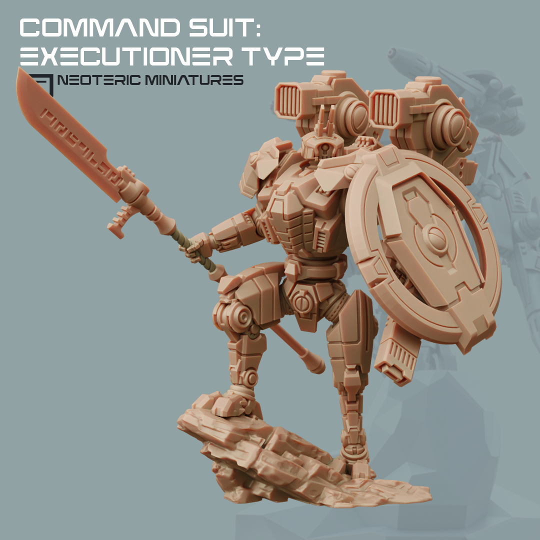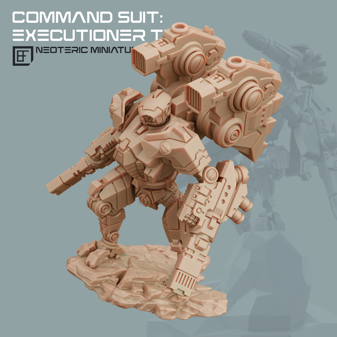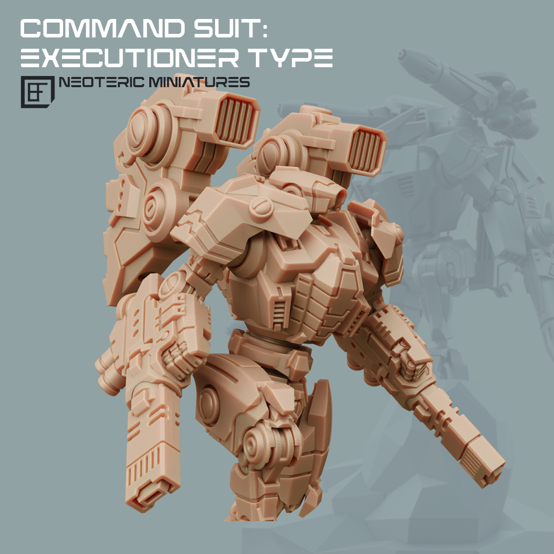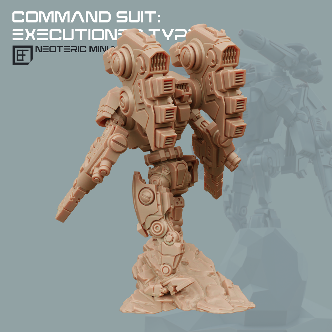 The Executioner is a command suit developed for those who prefer a more direct approach to battle. Thick armour protects the pilot and critical systems while the advanced suit allows for complete control of the battlefield as well as a brutal level of combat proficiency unmatched in any other suit, save the Ascendant.