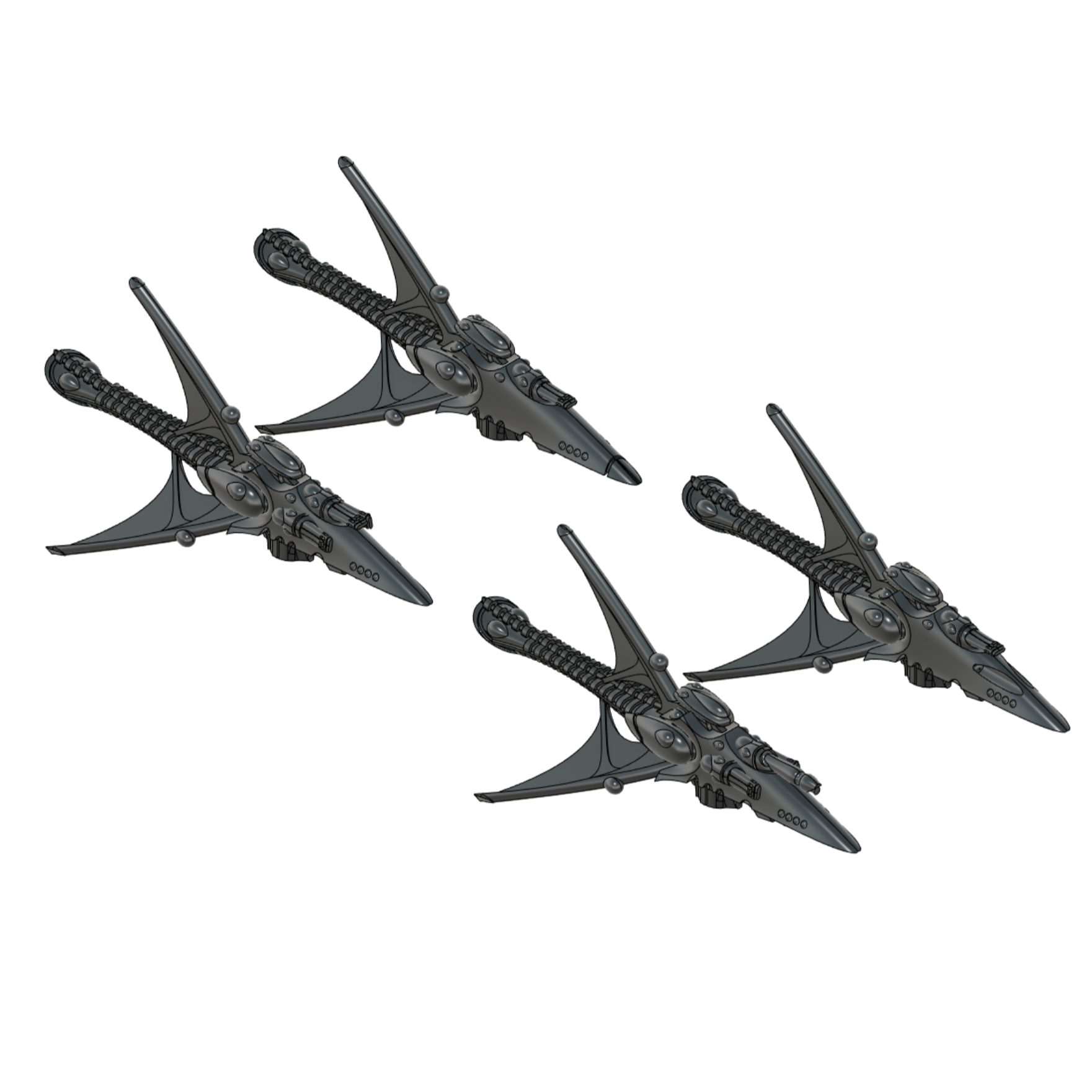 These are based off the really old concept sketches for the Space Fleet models. This is escort sized (~40 mm long), and comes with several different weapons fits: Torpedo tubes, lances, or a assault module nose. Supported and plain files.