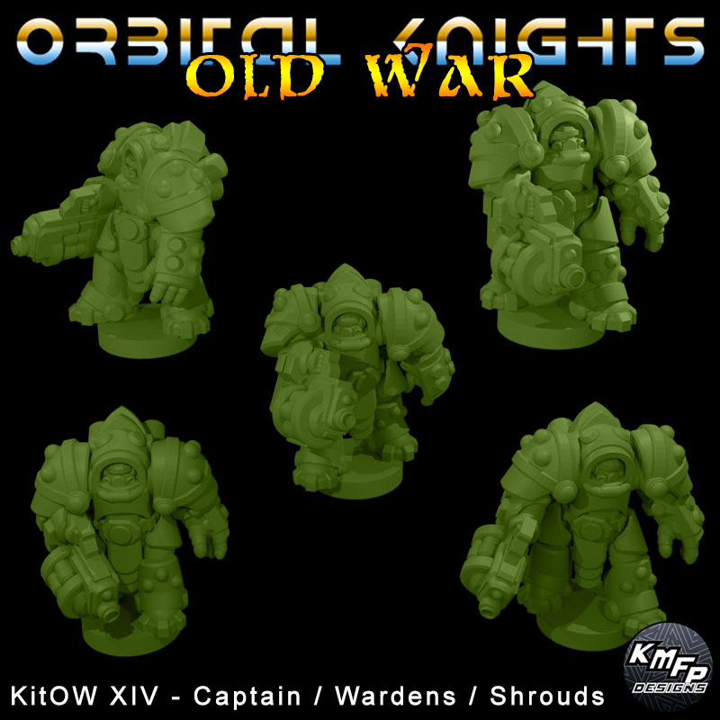 This kit contains three captains and two 5 man heavy armour units with alternate weaponry and details. Both Orbital Knight helmet variants included - both fully supported. The set also unsupported baseless versions for upscaling.
