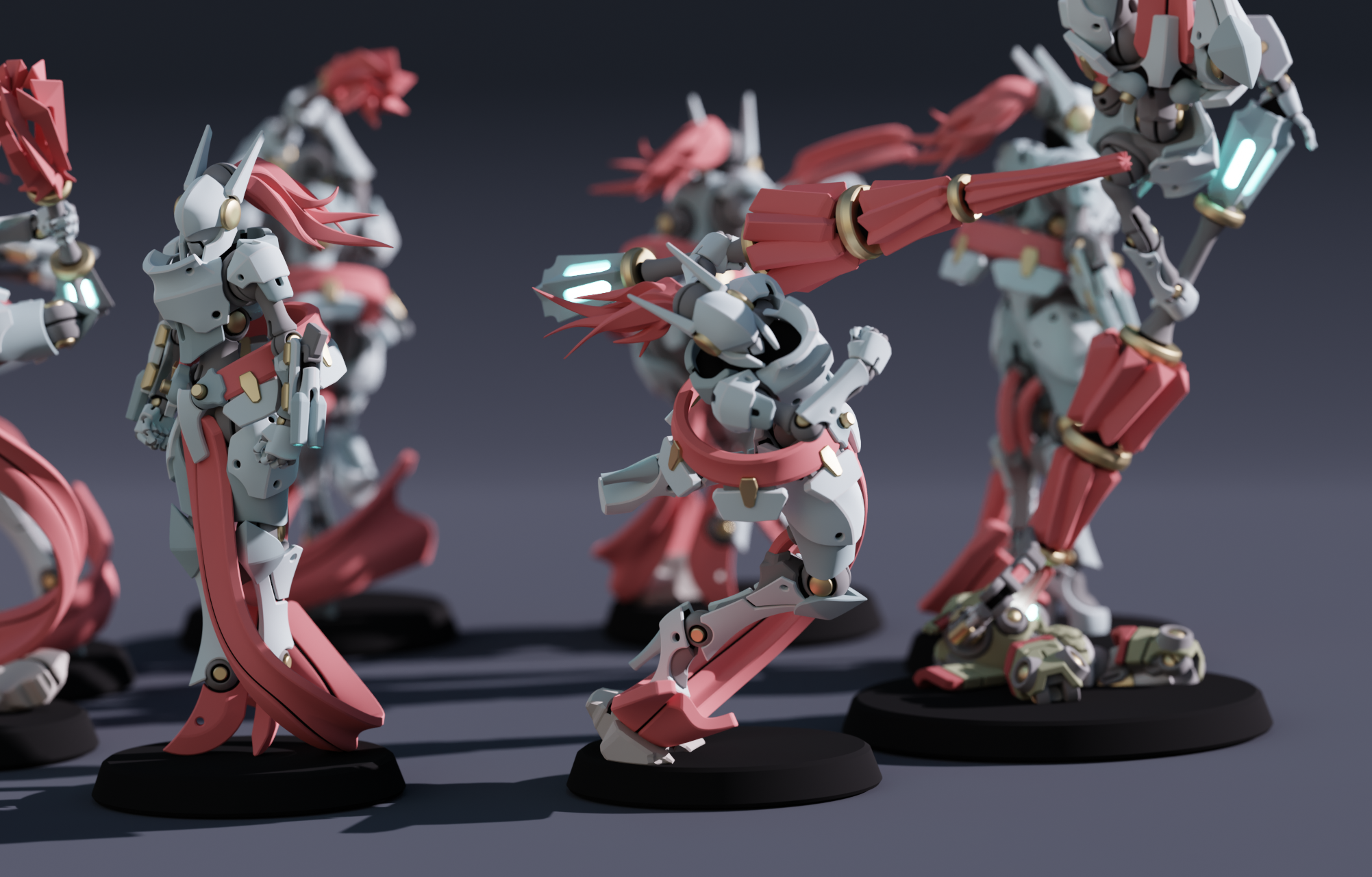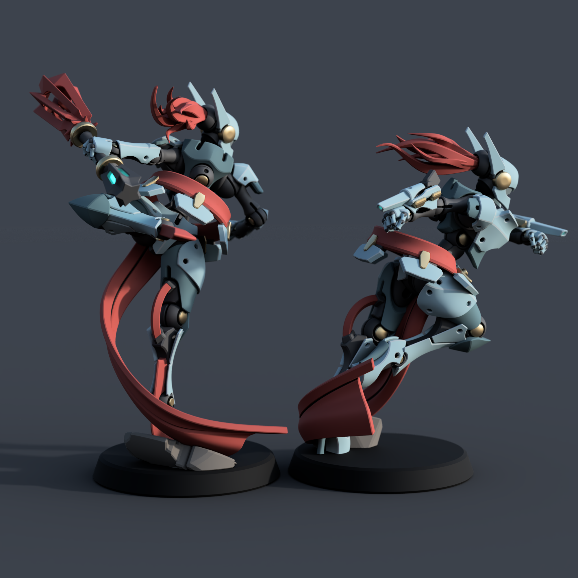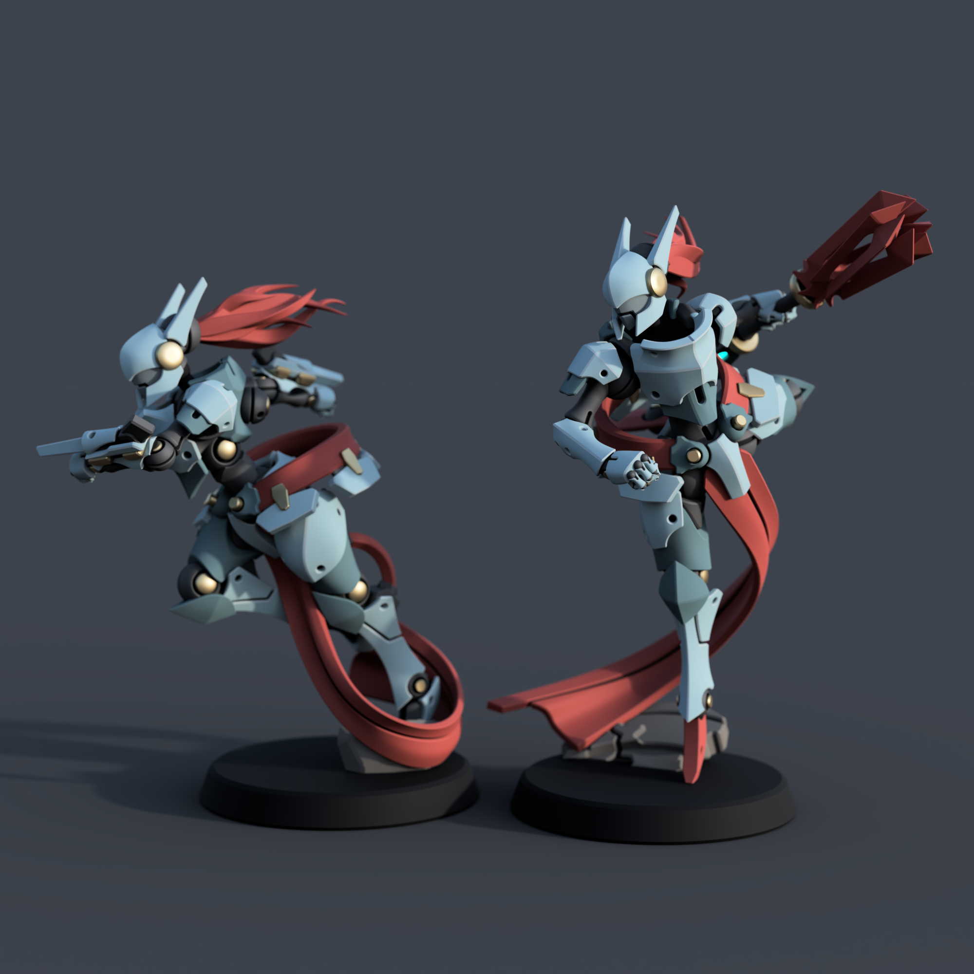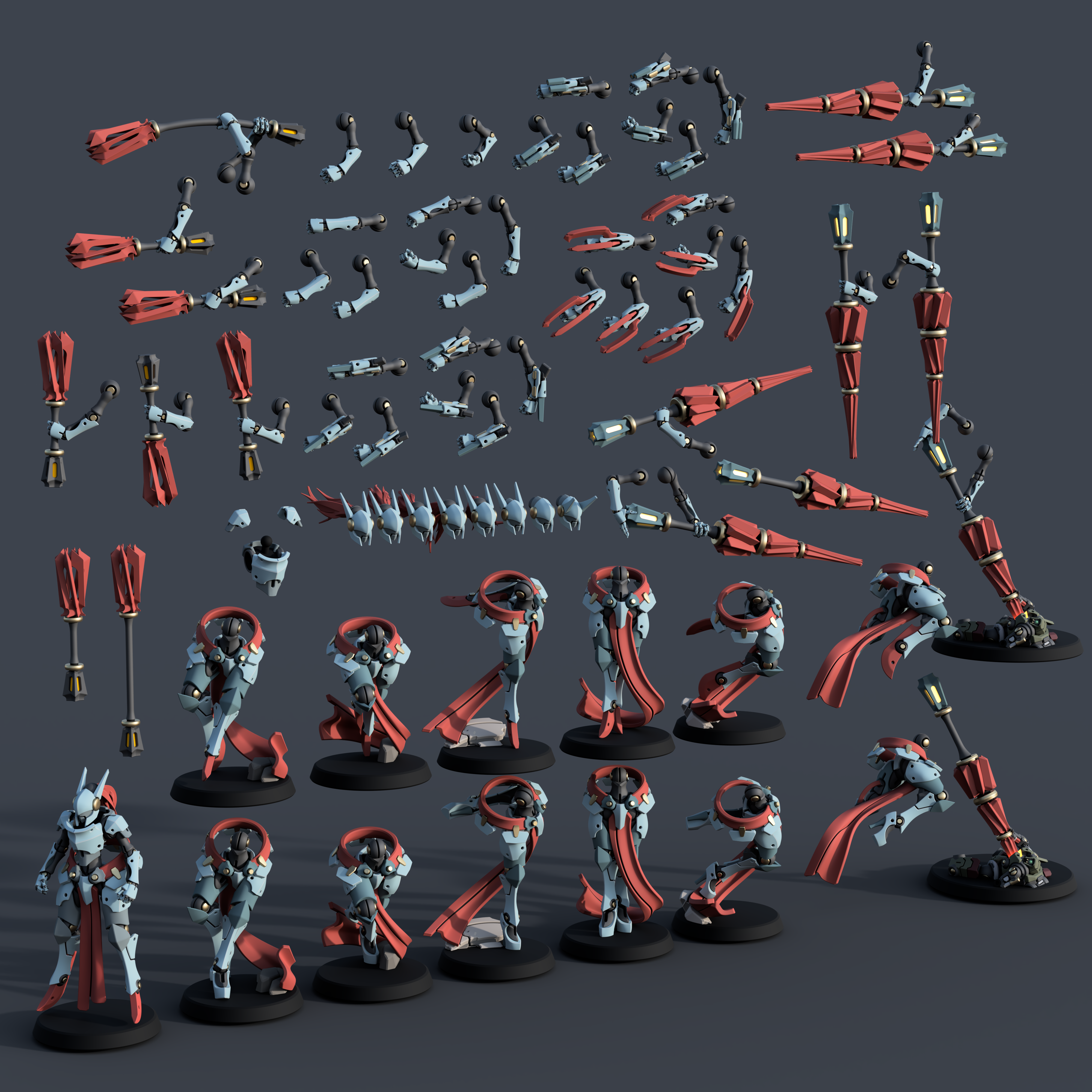 The Nulsidhe kit is a multipart modular frame builder with plenty of options to cover a handful of melee styles/uses. Mostly consisting of close range themed parts, everything is interchangeable. Most of the pieces in this kit can mix with the other infantry scaled kits without any scaling~