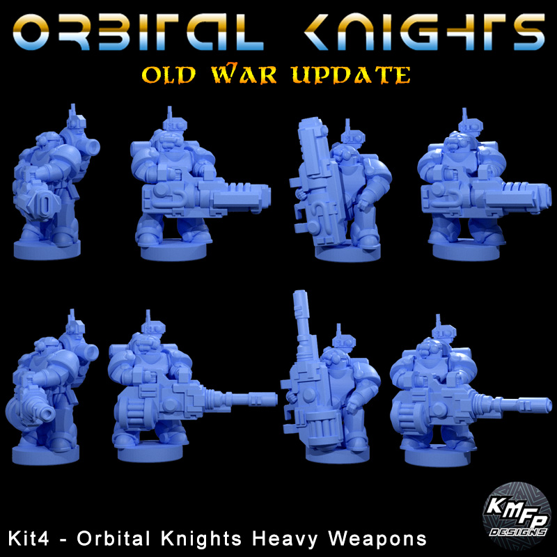 Orbital Knight Heavy Weapons Kit - 7 different weapons, in 4 different poses, both shoulder mounted and underslung, with both helmet options for over 100 unique models.