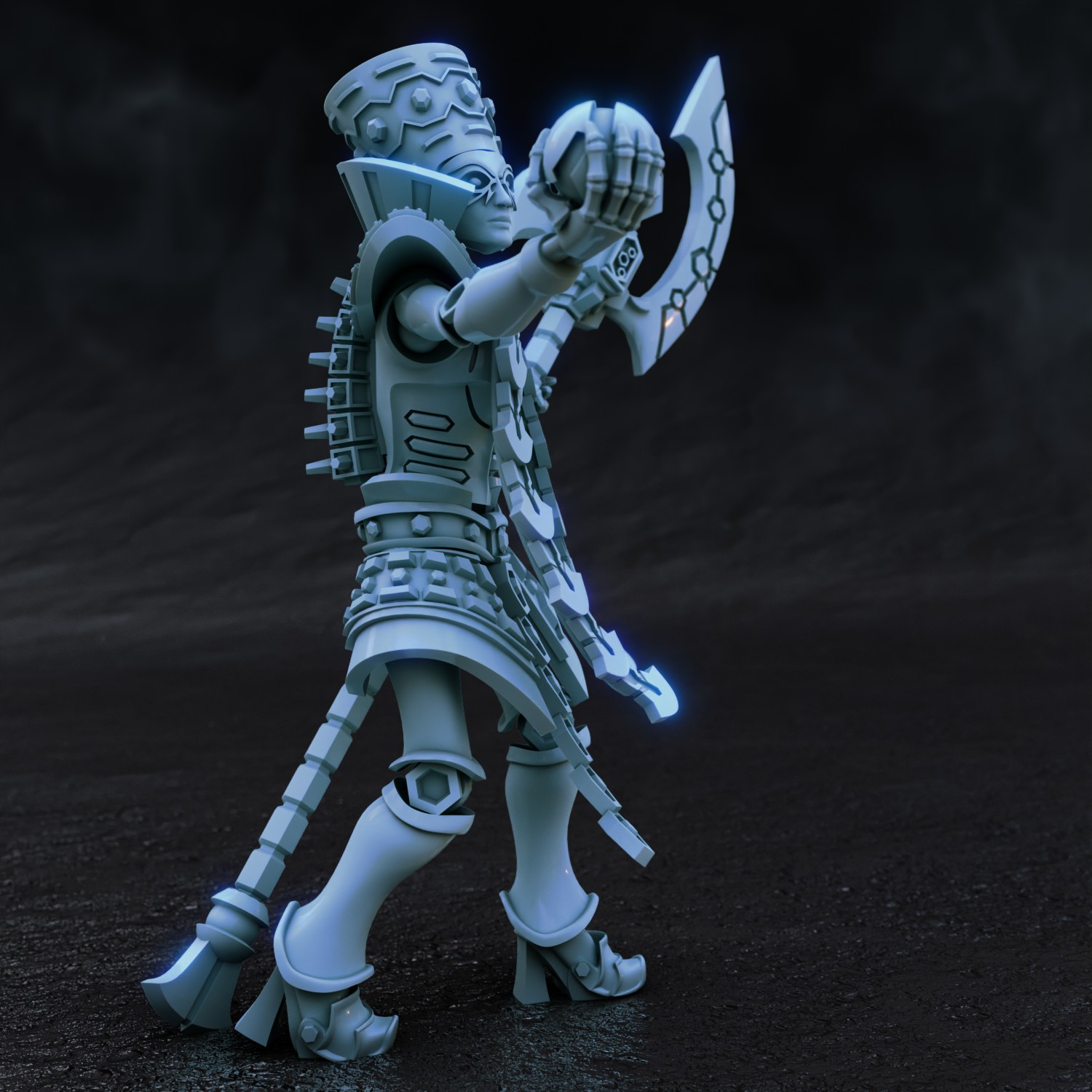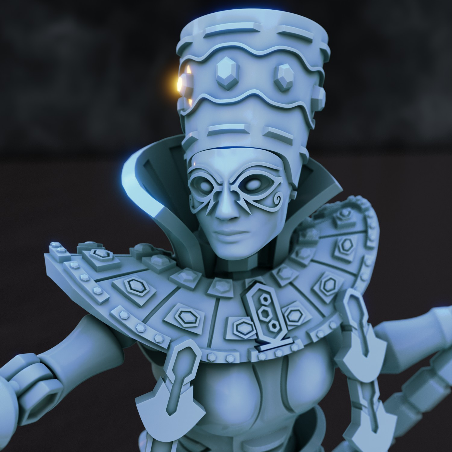 The energies of the Hexcite are what grant the Star Pharaohs their sapience and ambition. Every set of Hexcite crystals installed in each Star Pharaoh resonates differently, however, and in the case of the Pharaoh Queen, the Hexcite granted her distinctly feminine personality and mannerisms. Though do not mistake her compassion for the pharaohs under her command for weakness - the same love a mother bear has for her cubs is the love that will tear those who threaten them limb from limb.