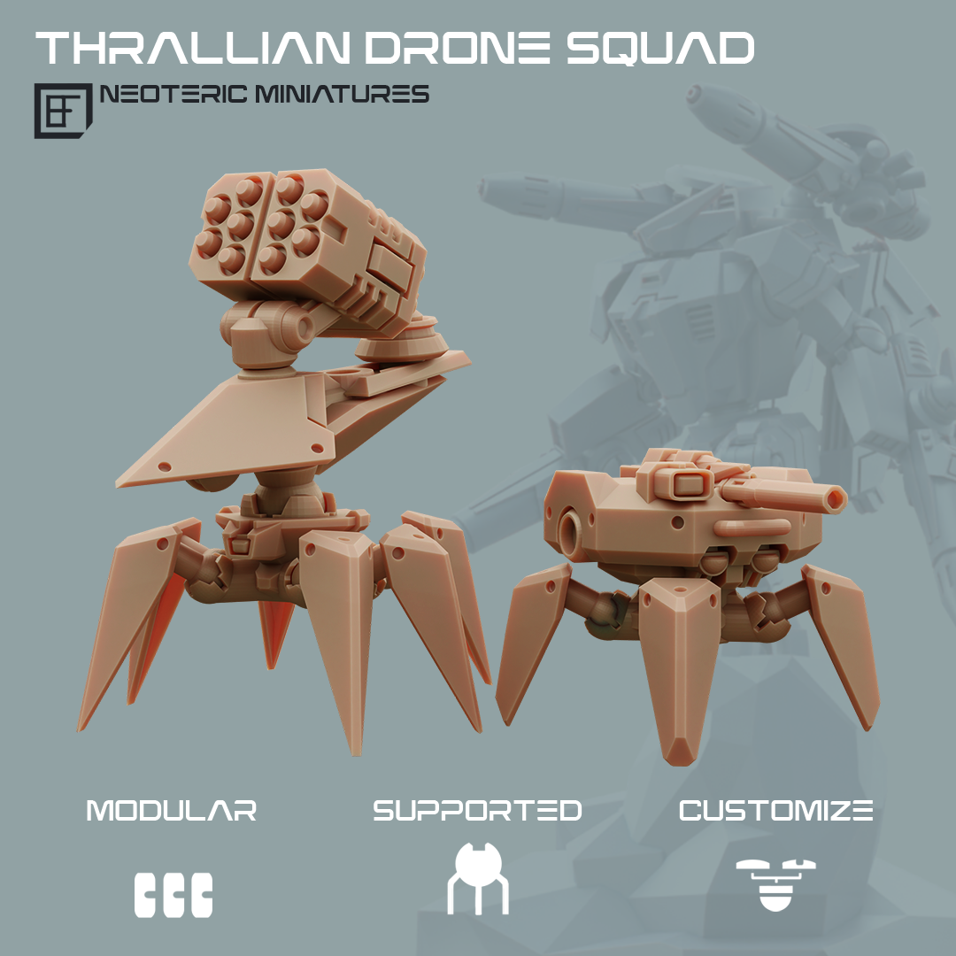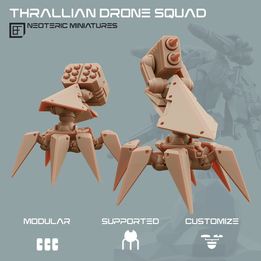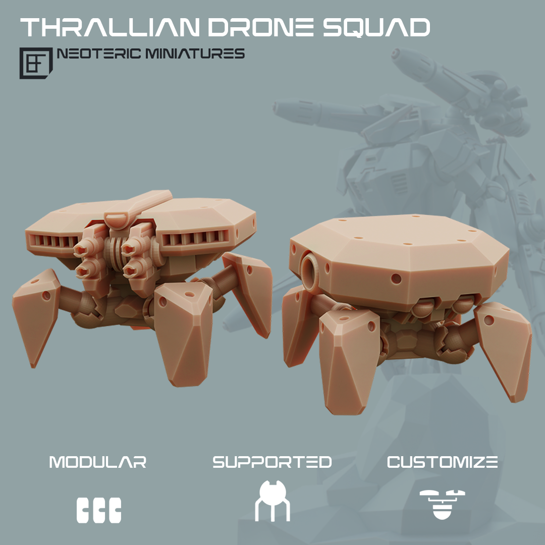 The Thrallian Drones are heavy duty support constructs for both civilian and military operations. Heavily armoured and durable, designed to work at extreme depths on the Thrallian home planet.