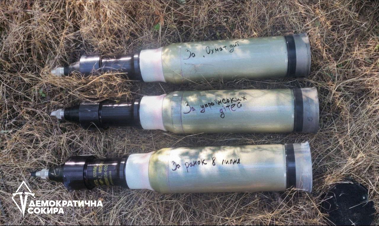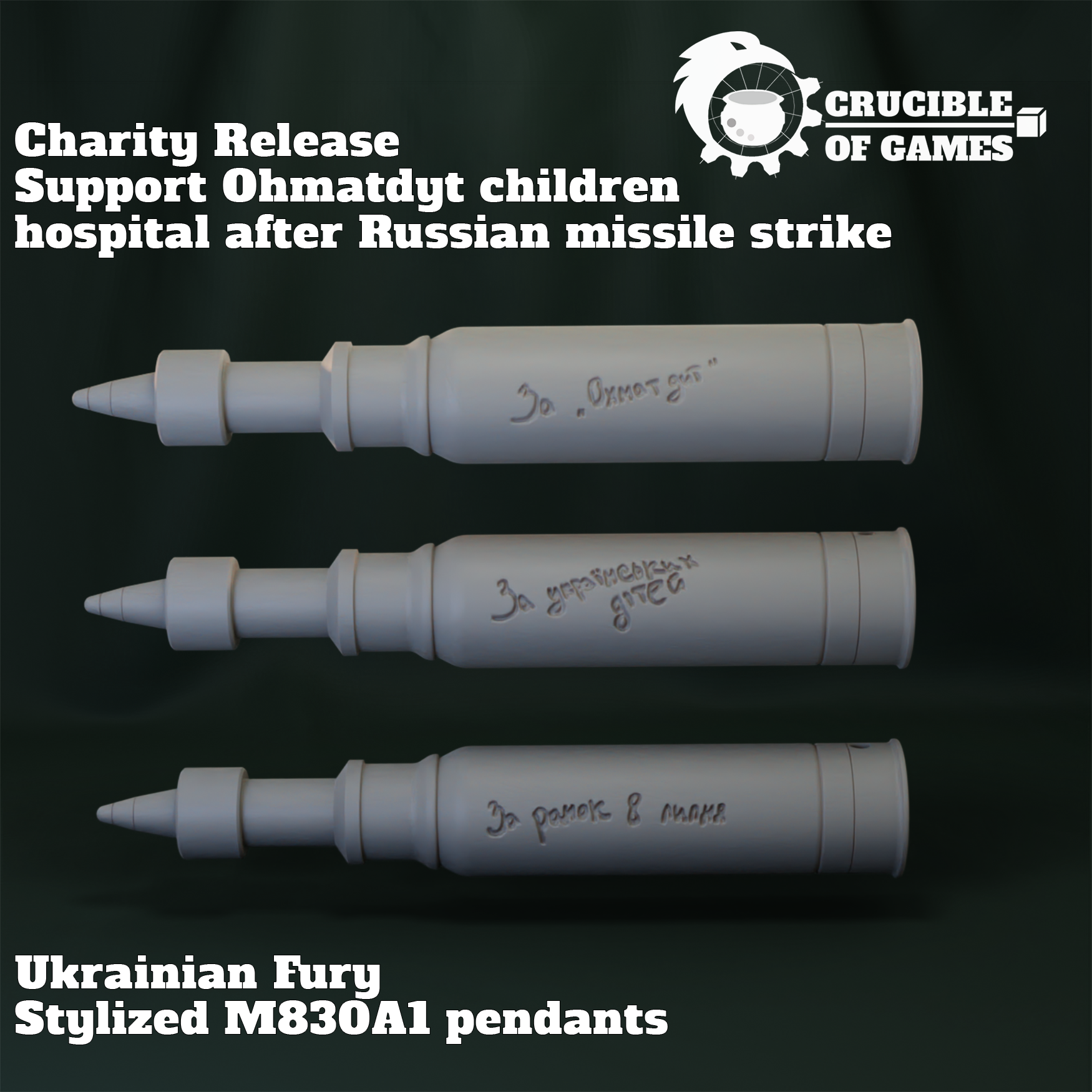 It is inspired by several M830A1 tank rounds, signed by Ukrainian soldiers in the following hours after the Russian cruise missile destroyed one of the departments of 'Ohmatdyt' and severely damaged several others. Ohmatdyt is the biggest pediatric institution in Ukraine, located in the centre of Kyiv, it has provided help to children from all corners of Ukraine for more than 100 years. You could learn basic info about it here: https://en.wikipedia.org/wiki/Okhmatdyt
